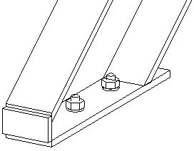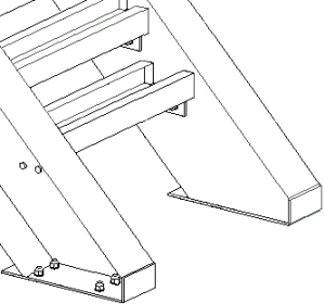 Détail Base d'escalier (1038) crée un plat horizontal boulonné et un plat vertical facultatif à un point donné d'un limon. Les plats sont soudés sur le limon.