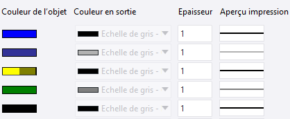 | Utiliser la couleur et la largeur de ligne par défaut à l'impression | La couleur et l'épaisseur de ligne par Défaut sont utilisées pour les couleurs du dessin qui n'ont pas de définition de sortie dans l'onglet Propriétés de ligne.
