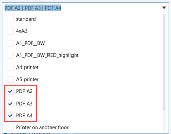 Lors de l'impression d'un ensemble de dessins sur plusieurs imprimantes à l'aide des fichiers de paramètres d'impression uniques ci-dessus, tous les dessins A4 génèrent des fichiers .pdf avec le préfixe A4_, tous les dessins A3 ont le préfixe A3_ et tous les dessins A2 génèrent des fichiers .pdf avec le préfixe A2_.