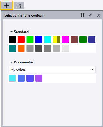 Une nouvelle propriété de ligne avec la couleur spécifiée est ajoutée dans l'onglet Propriétés de ligne. L'épaisseur de ligne est extraite de la ligne Défaut, mais vous pouvez l'ajuster. Si la couleur existe déjà, elle n'est pas ajoutée. |