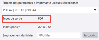 Si vous souhaitez imprimer plusieurs tailles de feuilles sur la même imprimante en mode Utiliser plusieurs imprimantes, créez un fichier de paramètres d'impression unique pour chaque format de papier et spécifiez la même imprimante dans tous ces fichiers.