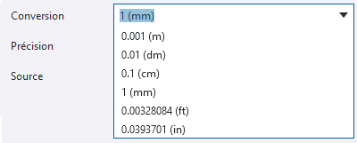 - Mise à l'échelle des valeurs d'attribut utilisateur sans unité. Un facteur de conversion est ajouté, de telle sorte que les valeurs sans unité puissent être converties par rapport aux unités globales utilisées dans les fichiers IFC. Les unités de surface et de volume doivent être associées à ces facteurs.