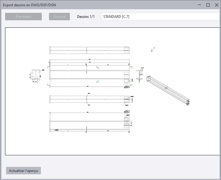 Indiquez si vous souhaitez inclure dans l'export les vues de dessin situées en-dehors de la zone de dessin. Si vous cochez cette case, les vues situées en dehors de la zone de dessin sont incluses dans l’export. Si vous ne cochez pas cette case, l’export exclut les vues de dessin qui se trouvent en-dehors de la zone de dessin. Par défaut, la case n’est pas cochée. Les vues qui se trouvent partiellement dans la zone de dessin sont toujours exportées par défaut. Lorsque la case Inclure les vues hors du cadre du dessin est cochée, l’aperçu de l’export est agrandi pour afficher toutes les vues incluses. |