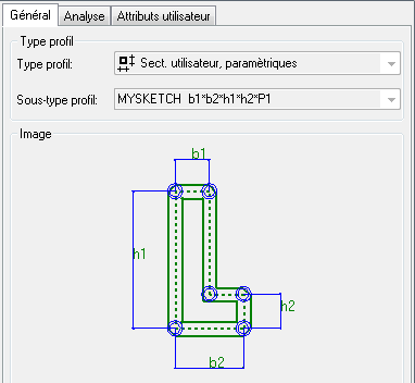 Vous pouvez créer une image d'un profil que vous avez créé pour illustrer la forme et les cotes de celui-ci. Tekla Structures affiche l'image lorsque vous recherchez des profils par épure dans le catalogue de profils.