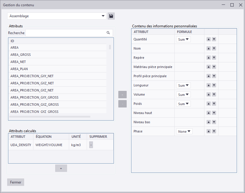 Vous pouvez définir les informations qui s'affichent dans le panneau latéral Informations personnalisées. Vous pouvez ajouter et modifier les gabarits de listes et leurs attributs.
