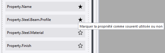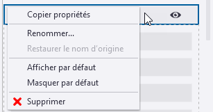 Vous pouvez définir séparément pour chaque type d'objets les propriétés qui sont visibles ou masquées par défaut dans le panneau des propriétés, et créer vos ensembles de propriétés favoris.
