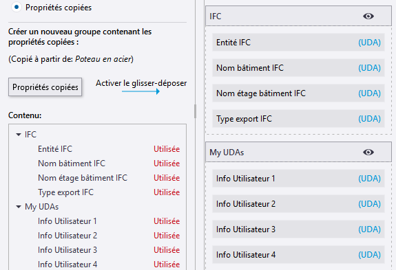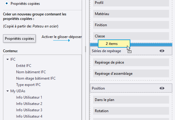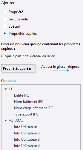Exemple : Comment ajouter des attributs utilisateur associés à l'IFC à la personnalisation du panneau des propriétés et les copier dans un autre type d'objet