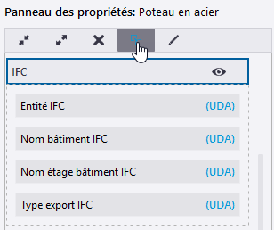 Si vous avez accidentellement supprimé le bouton Attributs utilisateur du panneau des propriétés, vous pouvez l'ajouter à nouveau au panneau des propriétés pour les objets du modèle.