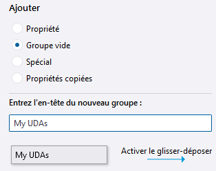 Ajouter un nouveau groupe à la personnalisation du panneau des propriétés |