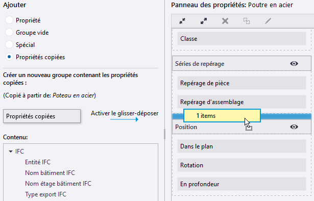 Ajout d'une propriété ou d'un groupe de propriétés