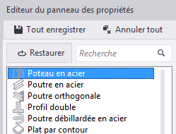 Cliquez sur le bouton Restaurer tout pour supprimer toutes les personnalisations de panneaux des propriétés. |