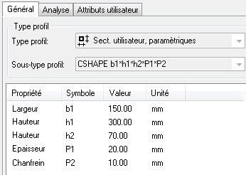 Une fois les tâches terminées, vous disposez d'un profil en C symétrique avec les cotes suivantes : b1 = b2 et h2 = h3. Lorsque vous utilisez le profil dans le modèle, vous pouvez modifier les cotes suivantes :