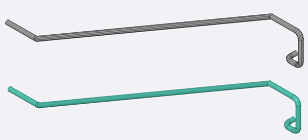 Dans l’image ci-dessous, le garde-corps en haut représente la sortie générée par l’extension Multi Converter. La géométrie de l’objet exporté comporte des facettes, et la sortie n’est pas adaptée aux procédés de fabrication de garde-corps. Le garde-corps en bas représente la sortie générée par l'export STEP/IGES. Les objets exportés ont une géométrie solide et la sortie est adaptée aux procédés de fabrication de garde-corps.