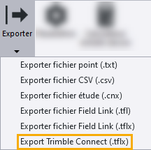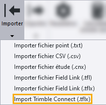 Vous pouvez désormais utiliser les nouvelles commandes d'import et d'export pour transférer des données d’implantation depuis et vers Trimble Connect sans effort afin d’activer un partage de données transparent avec des fichiers automatiquement mis à jour. Les données d’implantation sont importées et exportées vers Trimble FieldLink au format de fichier .tflx.