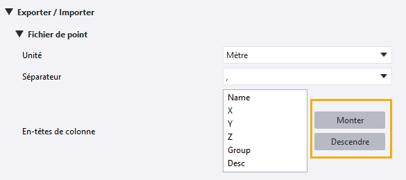 Dans les paramètres du Gestionnaire d'implantation, vous pouvez désormais facilement modifier l’ordre des colonnes dans les boîtes de dialogue d'import et d'export.