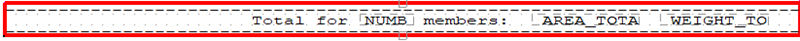 Nous avons ajouté des textes et des champs de valeur au pied de page : NUMBER_TOTAL, AREA_TOTAL et WEIGHT_TOTAL.
