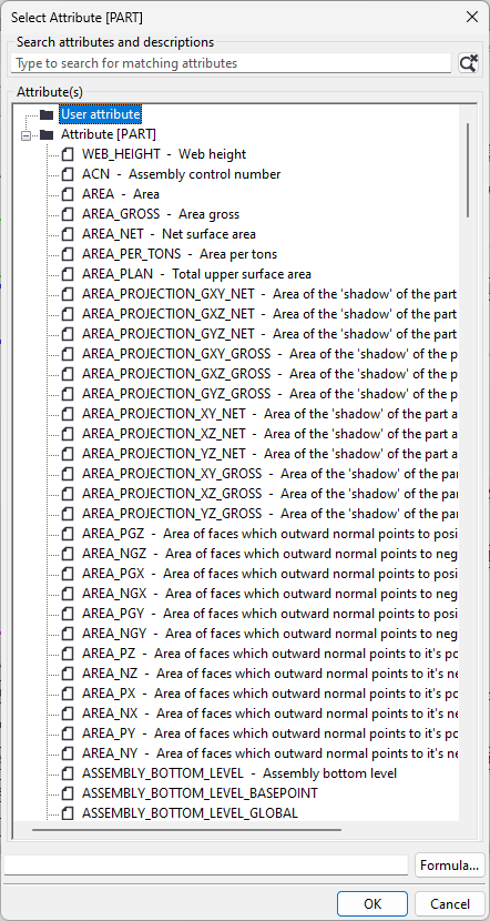 - Sélectionnez un attribut dans la liste et cliquez sur OK.