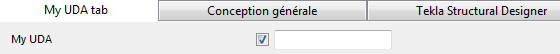 /***************************************************************************/ /* User-defined attributes */ /***************************************************************************/ part(0,"Part") { /* Common tab pages for part attributes */ tab_page("My UDA tab") { unique_attribute("MY UDA", "My UDA", string,"%s", no, none, "0,0", "0,0") { value("", 0) } } tab_page("My UDA tab", "My UDA tab", 19) modify (1) } /***************************************************************************/ /* Column attributes */ /***************************************************************************/ column(0,"j_column") { tab_page("My UDA tab", "My UDA tab", 19) modify (1) }L’ajout de unique_ avant l'attribut utilisateur rend l'attribut utilisateur unique. La valeur de l'attribut utilisateur n’est pas copiée sur une autre pièce.