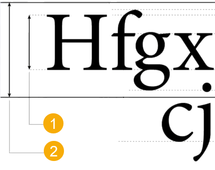Traditionnellement, la hauteur du texte dans les dessins Tekla Structures s'est basée uniquement sur la mesure de la hauteur de la police em (taille du point). Toutefois, certains projets exigent que la hauteur du texte soit déterminée à l'aide d'une autre norme industrielle, la hauteur de la police CAP. La hauteur de capitale (CAP) représente la hauteur d'une lettre majuscule de manière plus précise que la hauteur em (taille en points).