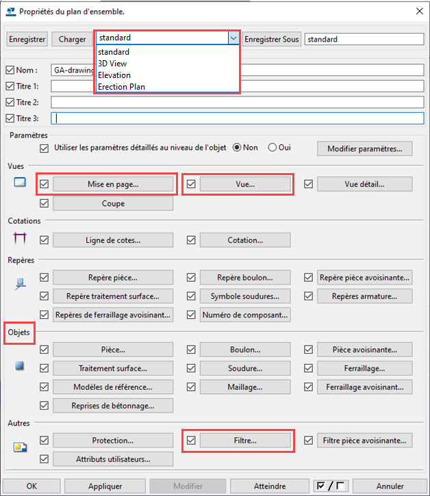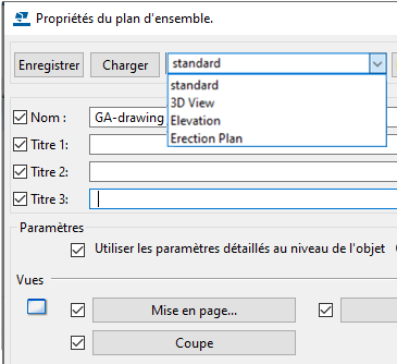 Notez que les paramètres au niveau des dessins définissent également la mise en page utilisée.