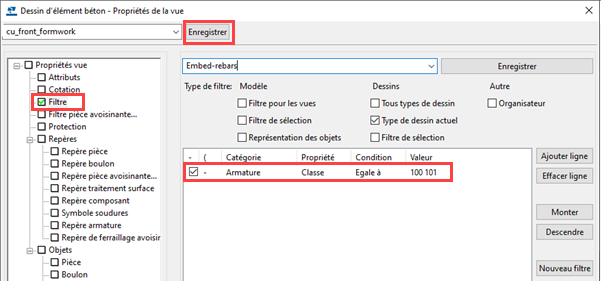 Assurez-vous que les classifications et dénominations des objets dans votre modèle correspondent aux filtres. Suivez les conventions de l’entreprise.