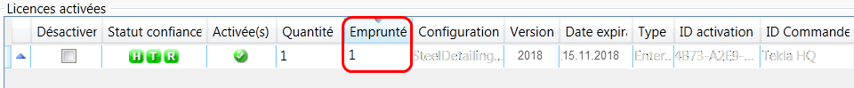 Motif : Vous ne pouvez pas sélectionner une licence pour la désactivation si la licence est encore empruntée.