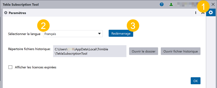 Modifier la langue de l'interface utilisateur de Tekla Subscription Tool