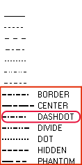 La definizione del tipo di linea per DASHDOT èA, 12.7, -6.35, 0, -6.35