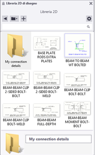 Nella Libreria 2D è possibile aggiungere i dettagli che si trovano nella cartella di sistema, progetto, azienda (FIRM) o modello corrente in uno qualsiasi dei disegni.