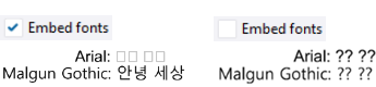 Quando si stampa su PDF, se è selezionato un carattere corretto contenente i caratteri multibyte necessari per i caratteri Unicode, ad esempio nelle marche, il carattere viene visualizzato correttamente anche se non si includono i caratteri. Se il carattere selezionato non contiene tutti i caratteri nel testo, viene utilizzato il carattere definito per la nuova opzione avanzata XS_DEFAULT_UNICODE_FONT_DRAWING_PRINTING. Il valore predefinito è Arial Unicode MS. Questo font potrebbe non essere installato sul computer di default e potrebbe essere necessario installarlo. È inoltre possibile definire un altro font contenente i caratteri necessari e già installato sul proprio computer.