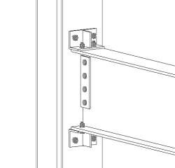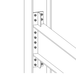 Appoggio trave superiore e inferiore con irrigidimenti. Varie opzioni di imbullonatura. Utilizzare Connessione parapetto (170). |