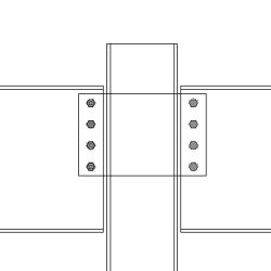 Connessione piatto d'estremità. Due parti secondarie. Scantonatura automatica per la tolleranza tra i bulloni. Opzione rinforzo. Utilizzare Piatto d'estremità a due lati (142). |