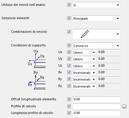| Offset longitudinale elemento | Per ulteriori informazioni, vedere Proprietà della parte di analisi. |