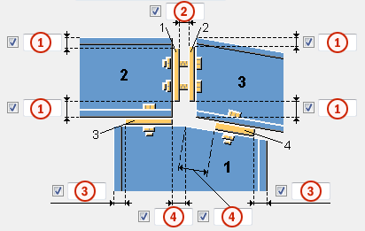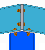 Connessione tra una colonna e una trave. È possibile utilizzare il componente con una sola trave secondaria, in tal caso è più difficile definire le impostazioni e le situazioni in cui è possibile utilizzare il componente sono minori. Se si utilizza la componente con una sola trave secondaria, immettere un valore negativo per la distanza tra i piatti d'estremità. |