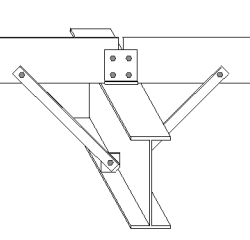 Connessione capriata di appoggio completo da trave a trave a due parti secondarie. Connessione controvento a gomito. |