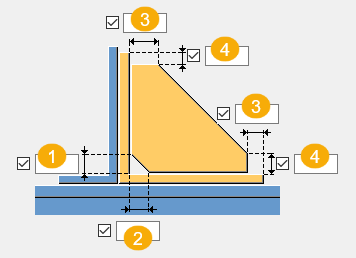 La linea centrale del morsetto è parallela al travetto. Viene creato un irrigidimento di linea. Definire le quote di taglio dell'irrigidimento. |