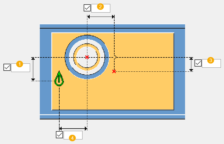 Distanza orizzontale tra il centro del foro e l'origine del dettaglio. |