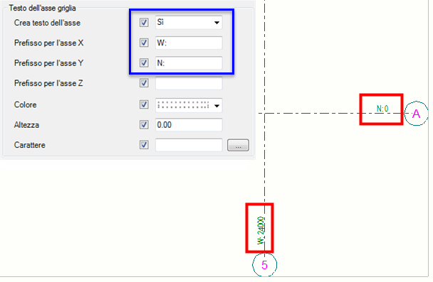 Utilizzo del prefisso e delle coordinate della griglia del modello come testo sull'asse griglia in un disegno