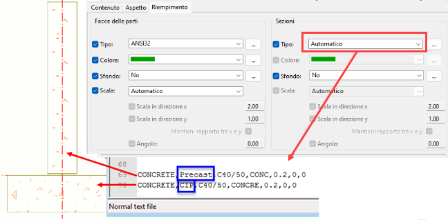 Le retinature gettato in opera e prefabbricate utilizzano una retinatura automatica diversa in base al tipo di unità di getto. È necessario selezionare il tipo di unità di getto appropriato nelle proprietà della parte in calcestruzzo.