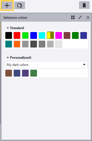 Una nuova proprietà linea con il colore specificato viene aggiunta alla scheda Proprietà linea. Lo spessore linea viene ricavato dalla riga Default, tuttavia è possibile modificarlo. Se il colore esiste già, non verrà aggiunto. |