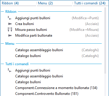 Ad esempio, immettere bullone se si cercano comandi dei bulloni.