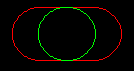 Due cerchi nell'asola. La dimensione del cerchio corrisponde alla dimensione effettiva dei fori. Se i cerchi si toccano tra loro, viene creato un solo cerchio al centro dell'asola. Il simbolo dell'asola viene creato in conformità l'impostazione apparenza selezionata ( |