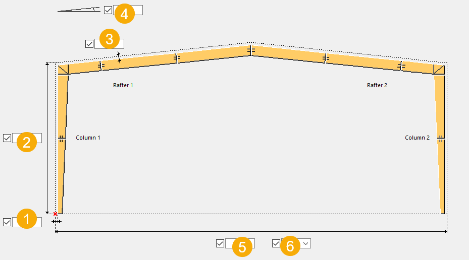 Struttura PEB (S92) crea una struttura di costruzione pre-ingegnerizzata sul punto selezionato. Questo componente utilizza i componenti esistenti per creare colonne e travi composte, piastre di base, connessione a gomito, connessioni a giunto e connessione apex.
