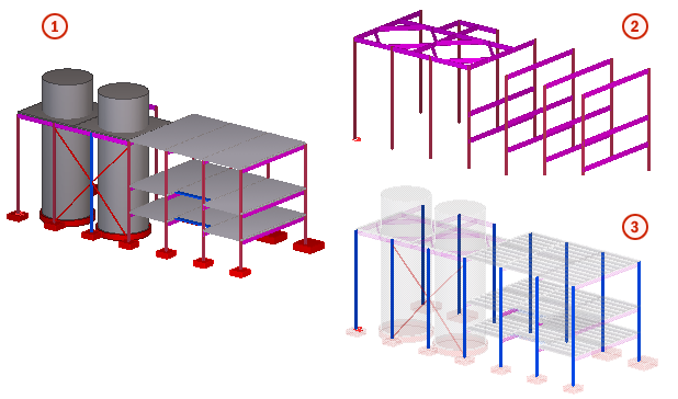 Con le impostazioni di rappresentazione oggetto e i gruppi oggetti è possibile definire che, ad esempio, solo alcuni oggetti del modello sono visibili o che alcuni oggetti del modello sono di un determinato colore.