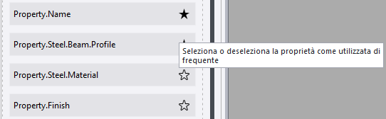 È possibile definire separatamente per ciascun tipo di oggetto le proprietà visibili o nascoste, per impostazione predefinita, nel pannello proprietà e creare i gruppi di proprietà preferiti.
