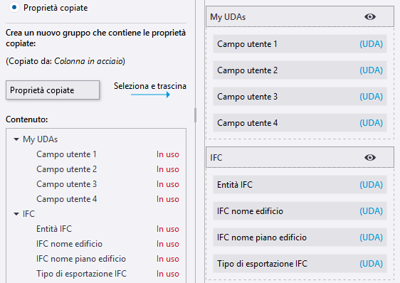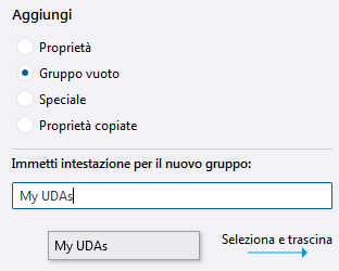 Attributi utente (UDA) nel pannello proprietà personalizzato
