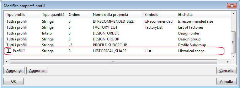 Viene visualizzata la finestra di dialogo Modifica proprietà profili.
