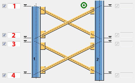 | 1 | Livello superiore del controvento superiore. Se non viene immesso alcun valore, il controvento superiore non viene creato. |