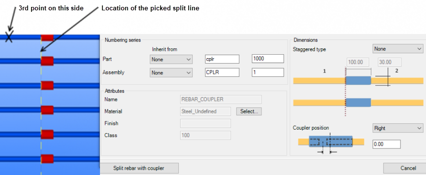 - Cliccare due volte su Dividi barra d'armatura e aggiungi connettore per aprire le proprietà del componente.