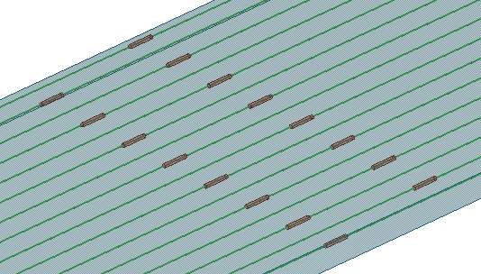 Cliccare sul pulsante Seleziona barre d'armatura e selezionare le barre d'armatura di cui si desidera regolare le estremità in base al valore impostato per la distanza. Le estremità della barra d'armatura devono essere adiacenti. |